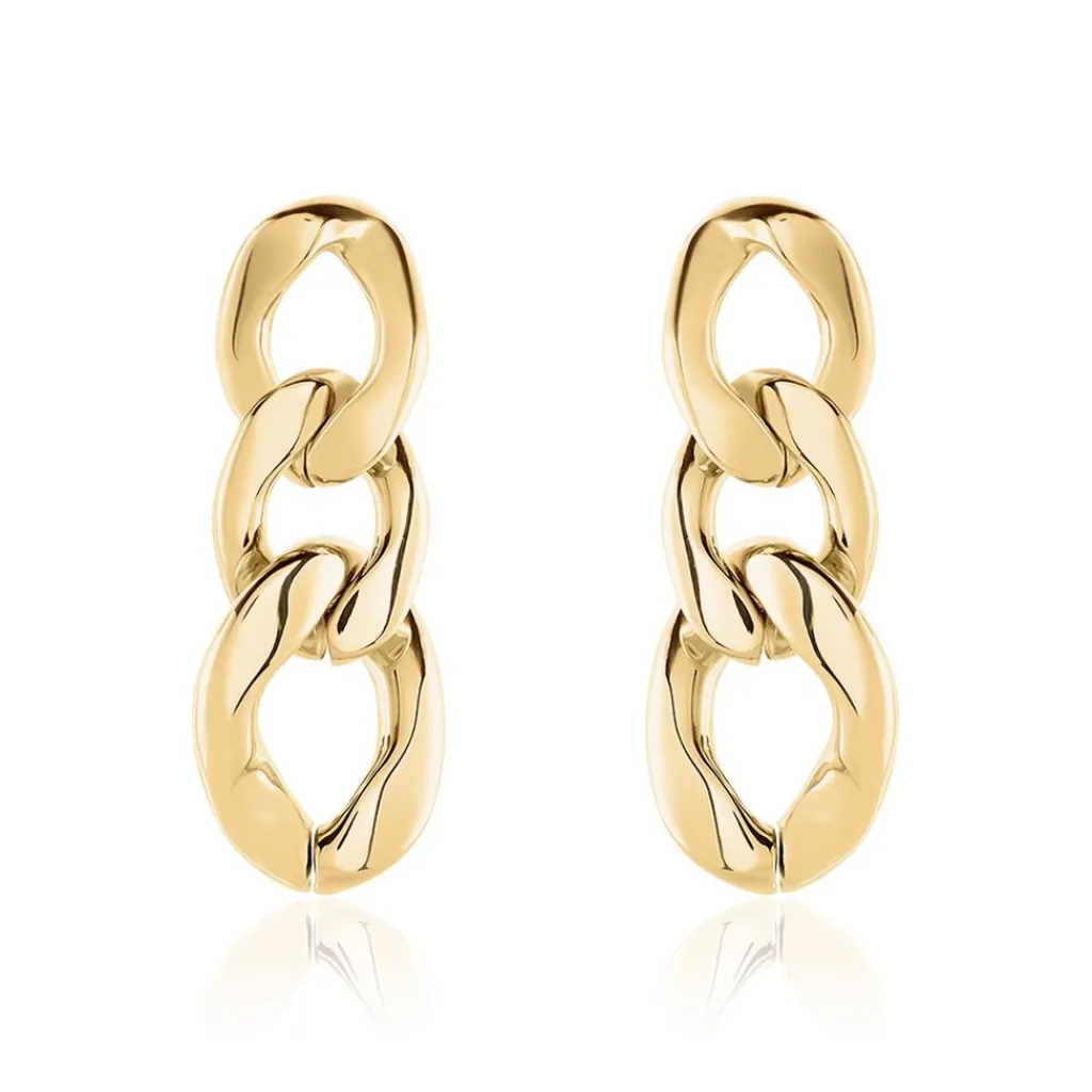 Boucles D’oreilles Pendantes Acier Inoxydable Jaune Maillons Gourmette 3.2mm