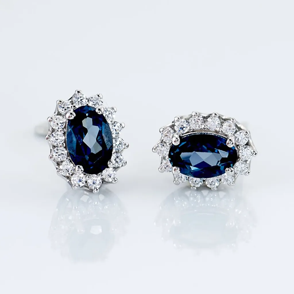 Boucles D’oreilles Or Blanc 375/1000 Marguerites Topazes London Blue Entourages Oxydes De Zirconium