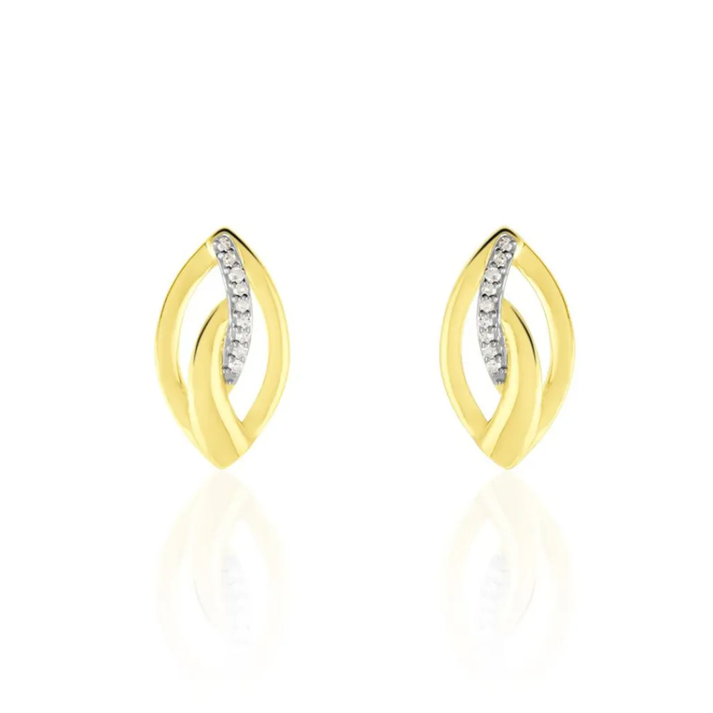 Boucles D’oreilles Puces Or Jaune 375/1000 Forme Gouttes Entrelacées Pavage Diamants Blancs