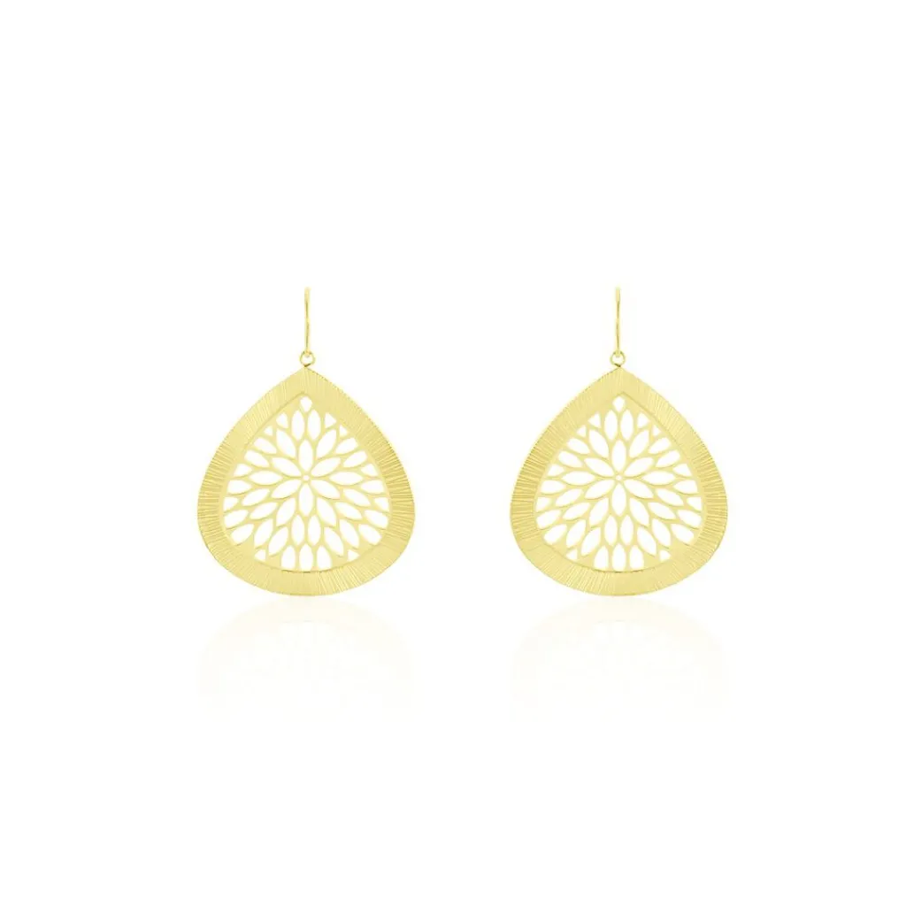 Boucles D’oreilles Pendantes Acier Doré Goutte Feuillage