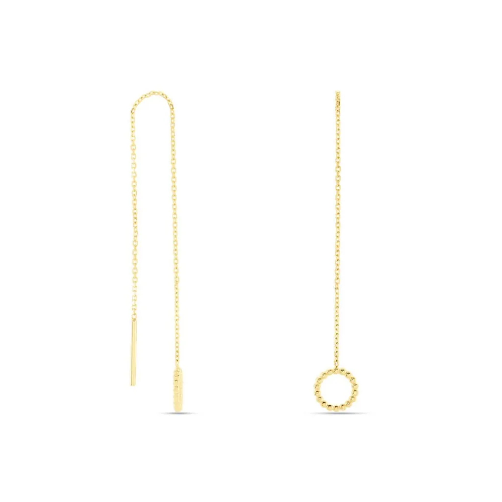 Boucles D’oreilles Pendantes Or Jaune 375/1000 Cercles Ajoures Effet Perle Chaine Maille Jaseron