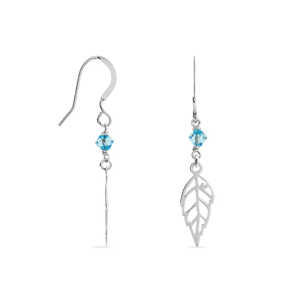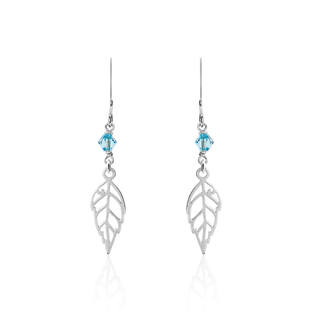 Boucles D’oreilles Pendantes Argent Blanc 925/1000 Feuilles Pierres Bleues