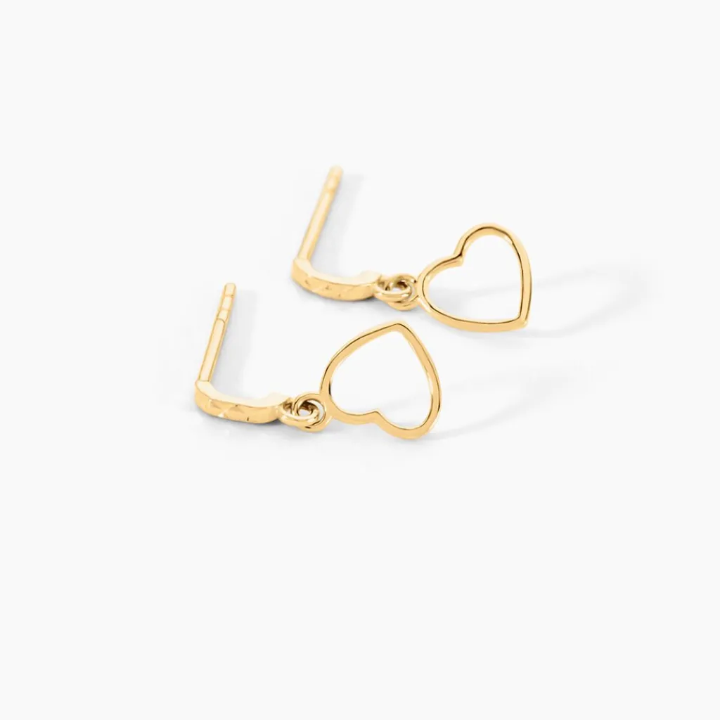 Boucles D’oreilles Or Jaune 375/1000 Formes Petits C艙urs Pendants
