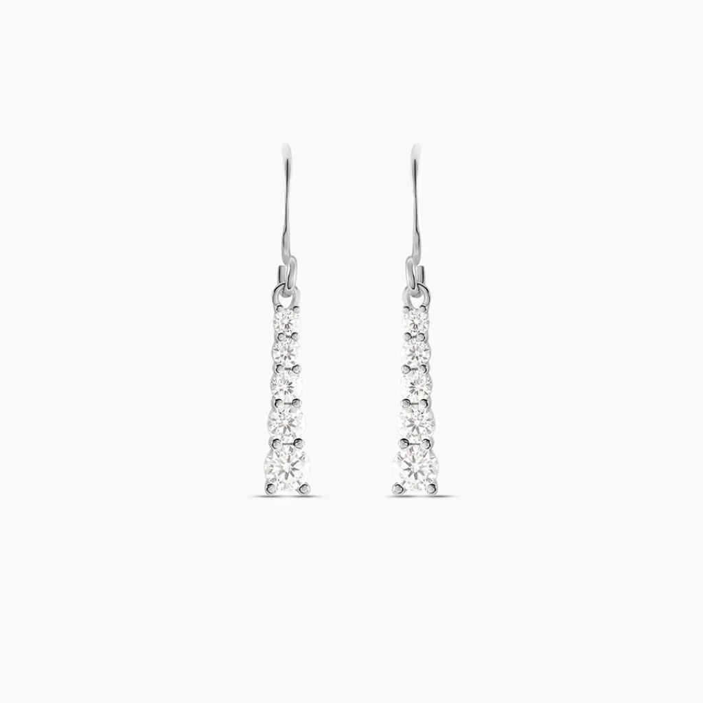 Boucles D’oreilles Pendantes Argent Blanc 925/1000 Petites Rivieres Decroissantes Oxydes De Zirconium