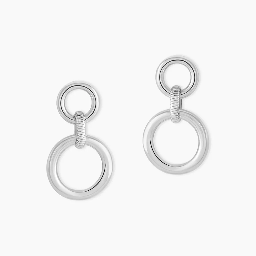 Boucles D’oreilles Pendantes Argent Blanc 925/1000 Double Cercles