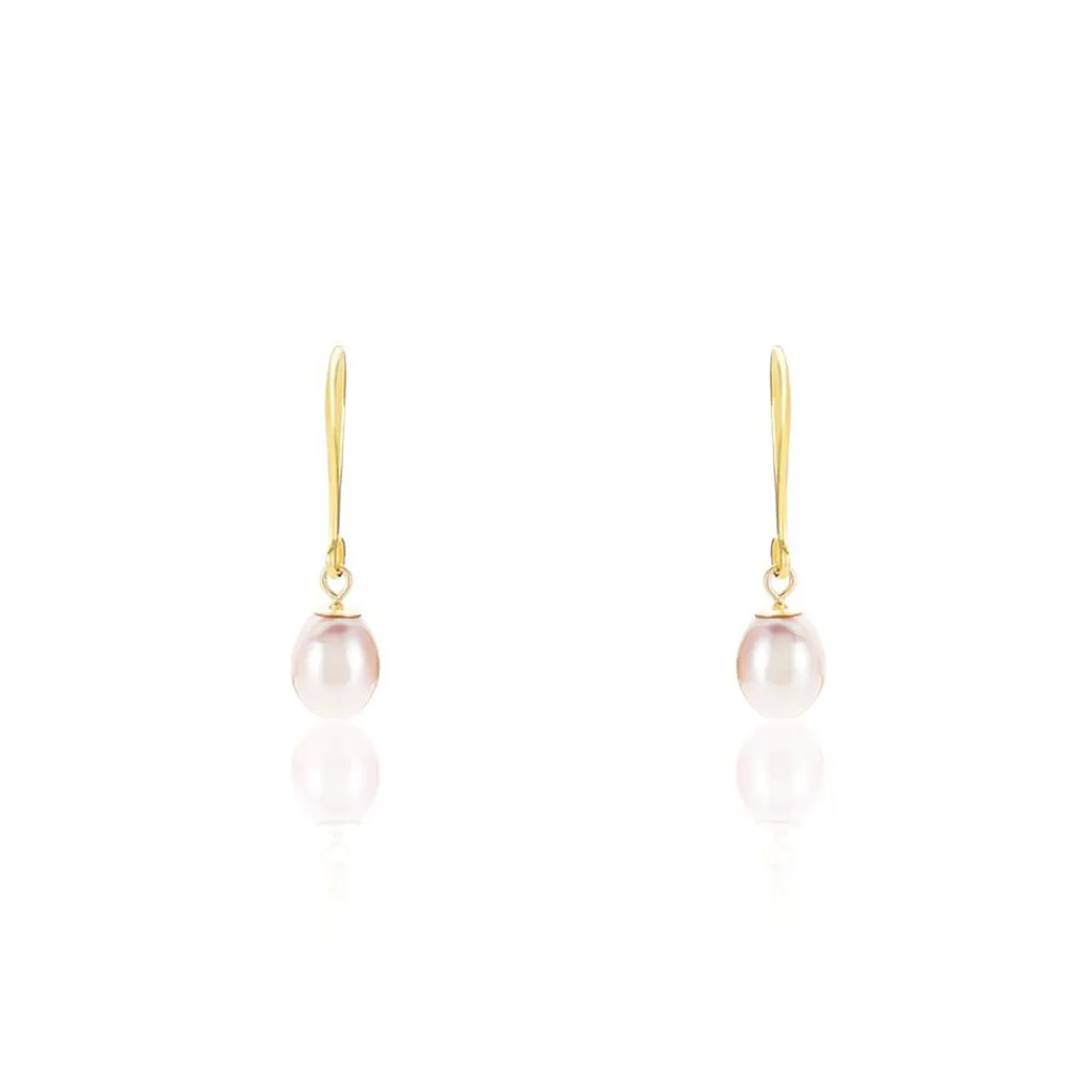 Boucles D’oreilles Pendantes Or Jaune 375/1000 Perles De Culture Roses Formes 5.5/6mm