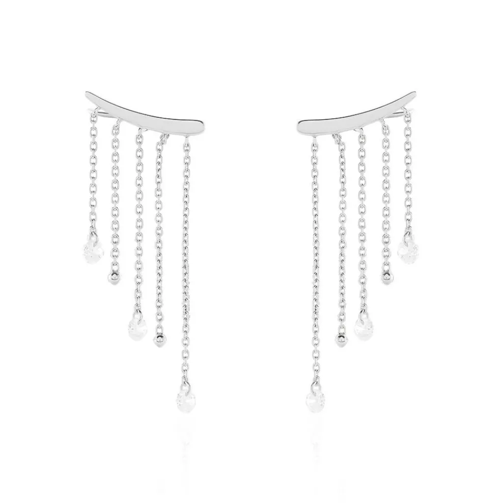 Boucles D’oreilles Pendantes Argent Rhodié 925/1000 Oxyde De Zirconium