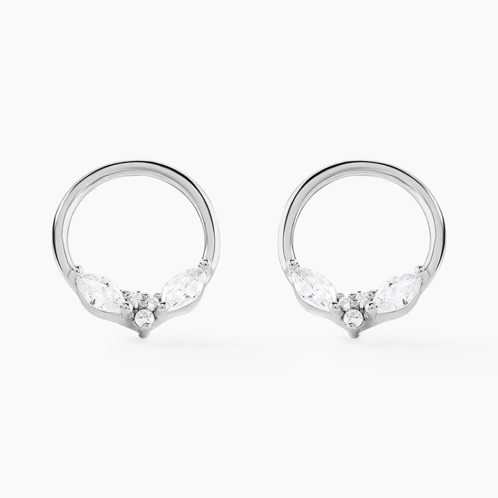 Boucles D’oreilles Argent Blanc 925/1000 Formes Cercles Bordures Navettes Cristaux Sertis Griffes Oxydes De Zirconium