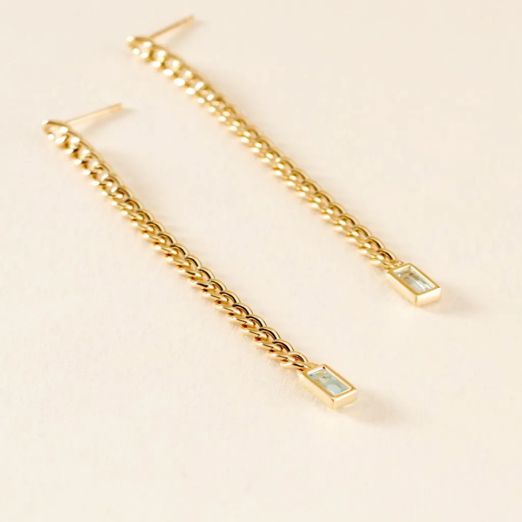 Boucles D’oreilles Pendantes Or Jaune 375/1000 Topaze Baguette Maille Gourmette