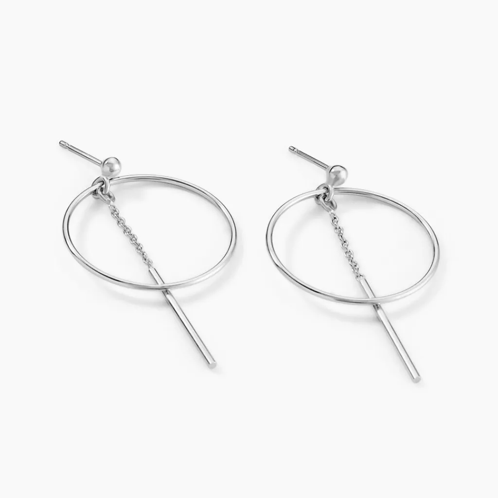 Boucles D’oreilles Pendantes Argent Blanc 925/1000 Cercles Ajoures Barrettes Pendantes