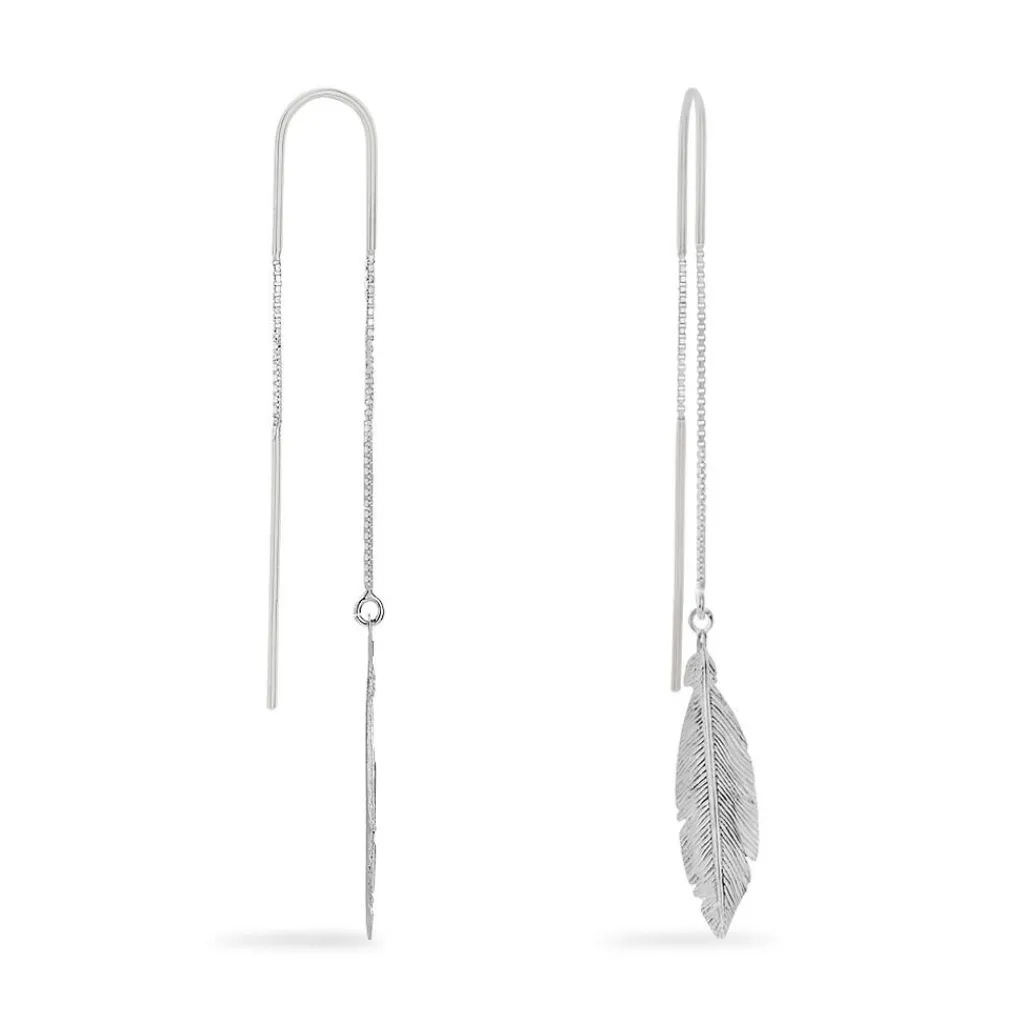 Boucles D’oreilles Pendantes Argent Blanc 925/1000 Plumes Mailles Forcat