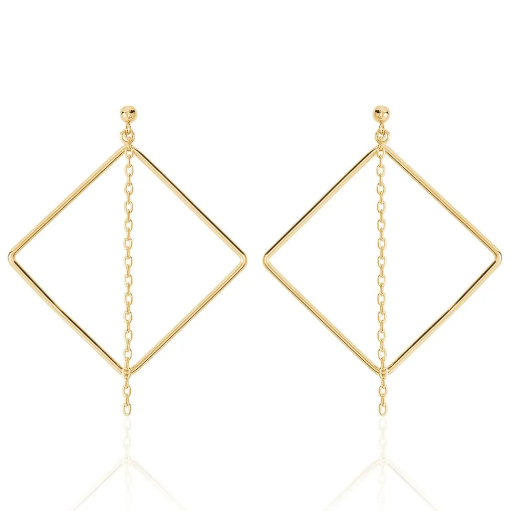 Boucles D’oreilles Pendantes Plaqué Or Jaune Carres Ajoures Et Chaines