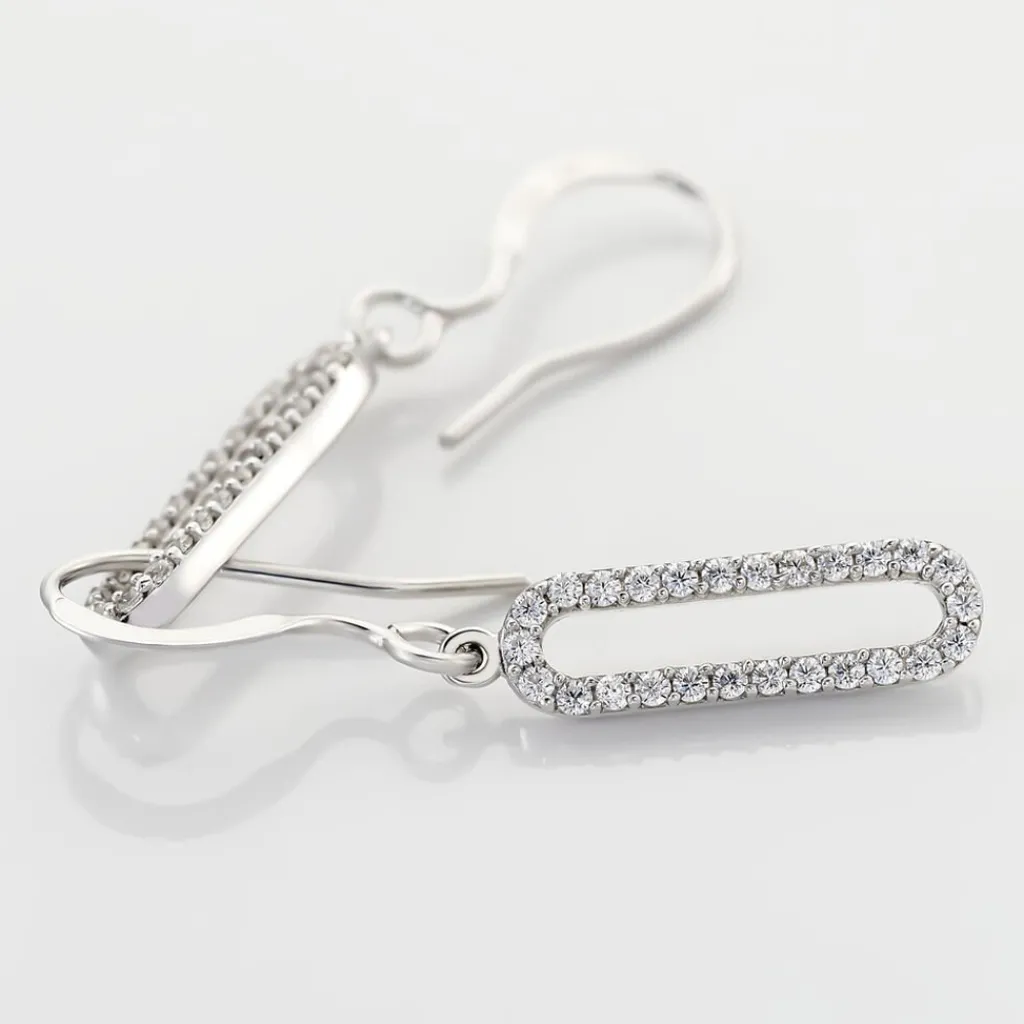 Boucles D’oreilles Pendantes Argent Blanc 925/1000 Ovales Sertis Griffes Oxydes De Zirconium
