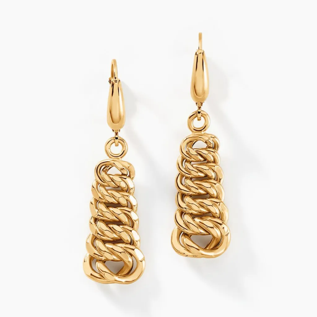 Boucles D’oreilles Pendantes Or Jaune 750/1000 Maille Americaine