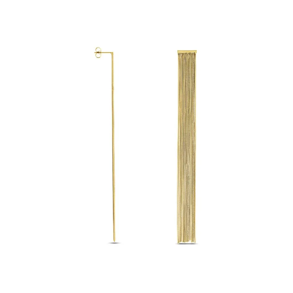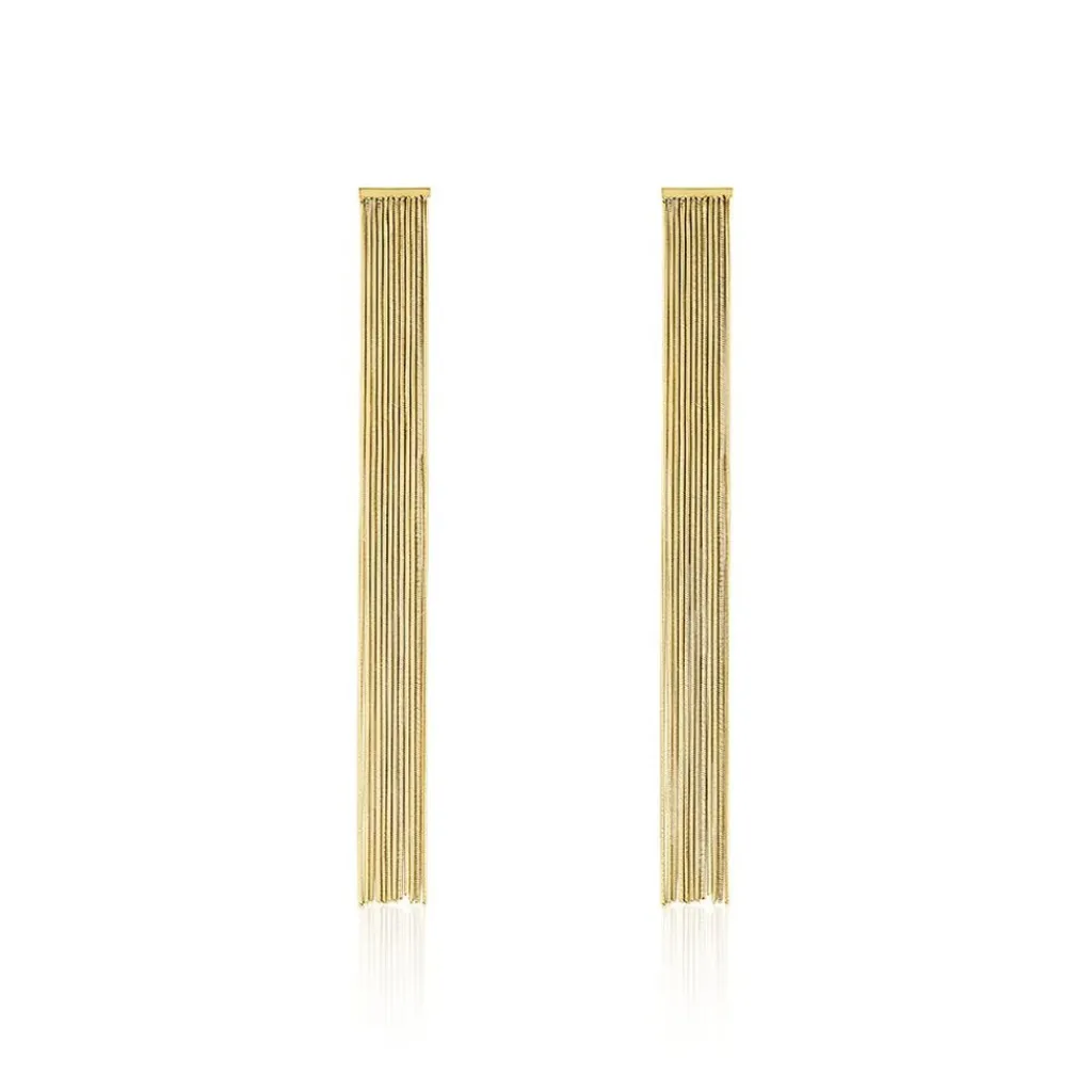 Boucles D’oreilles Pendantes Acier Doré Franges Longues 12cm