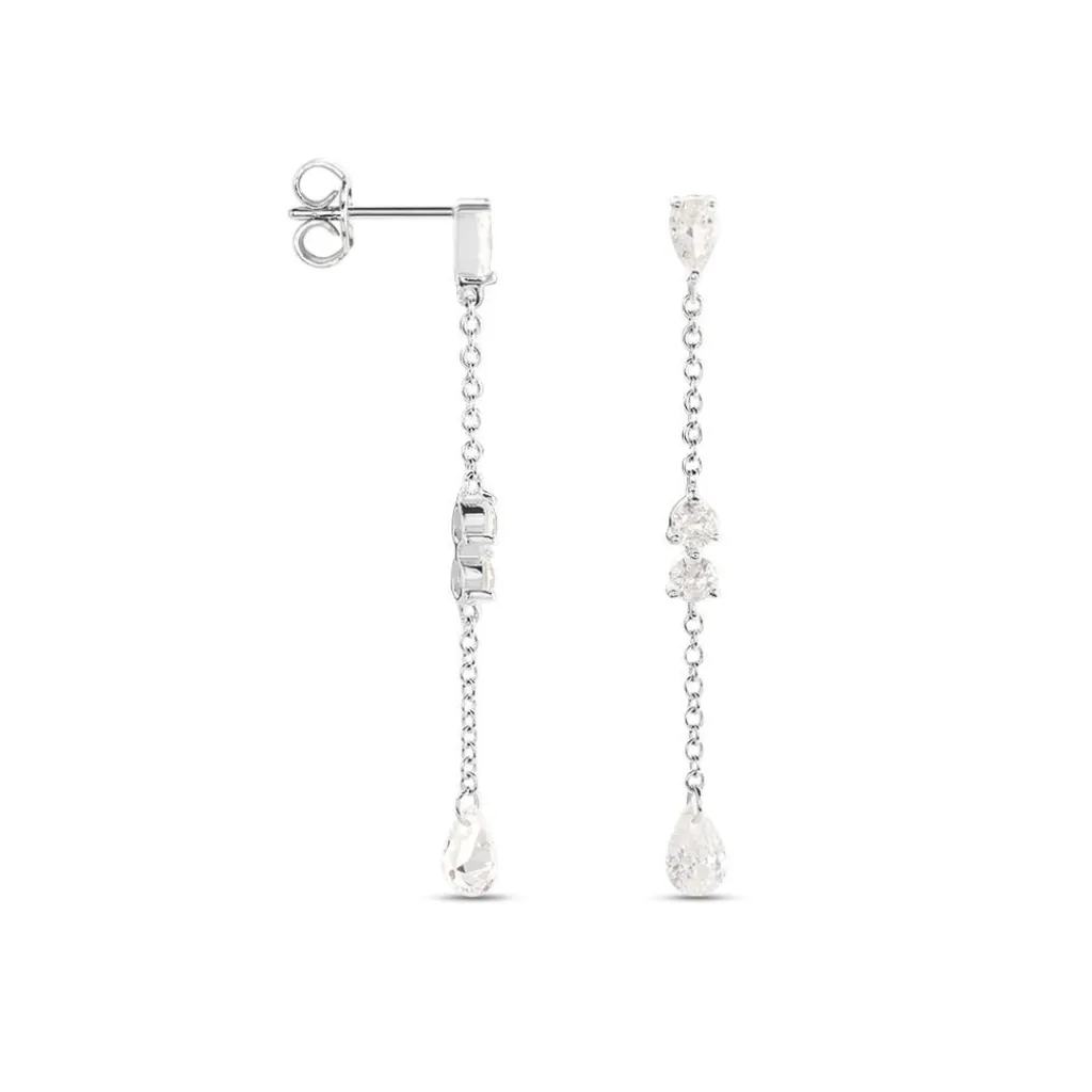Boucles D’oreilles Pendantes Argent 925/1000 Oxydes De Zirconium Sertis Griffes