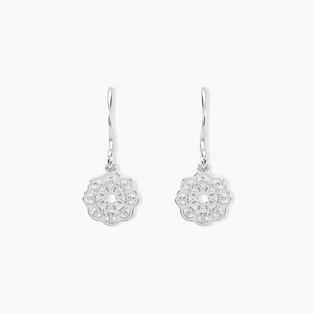 Boucles D’oreilles Pendantes Argent Blanc 925/1000 Rosaces Fleurs Diamètre 4mm