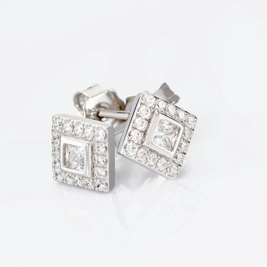 Boucles D’oreilles Puces Argent Blanc 925/1000 Carrees Oxydes De Zirconium
