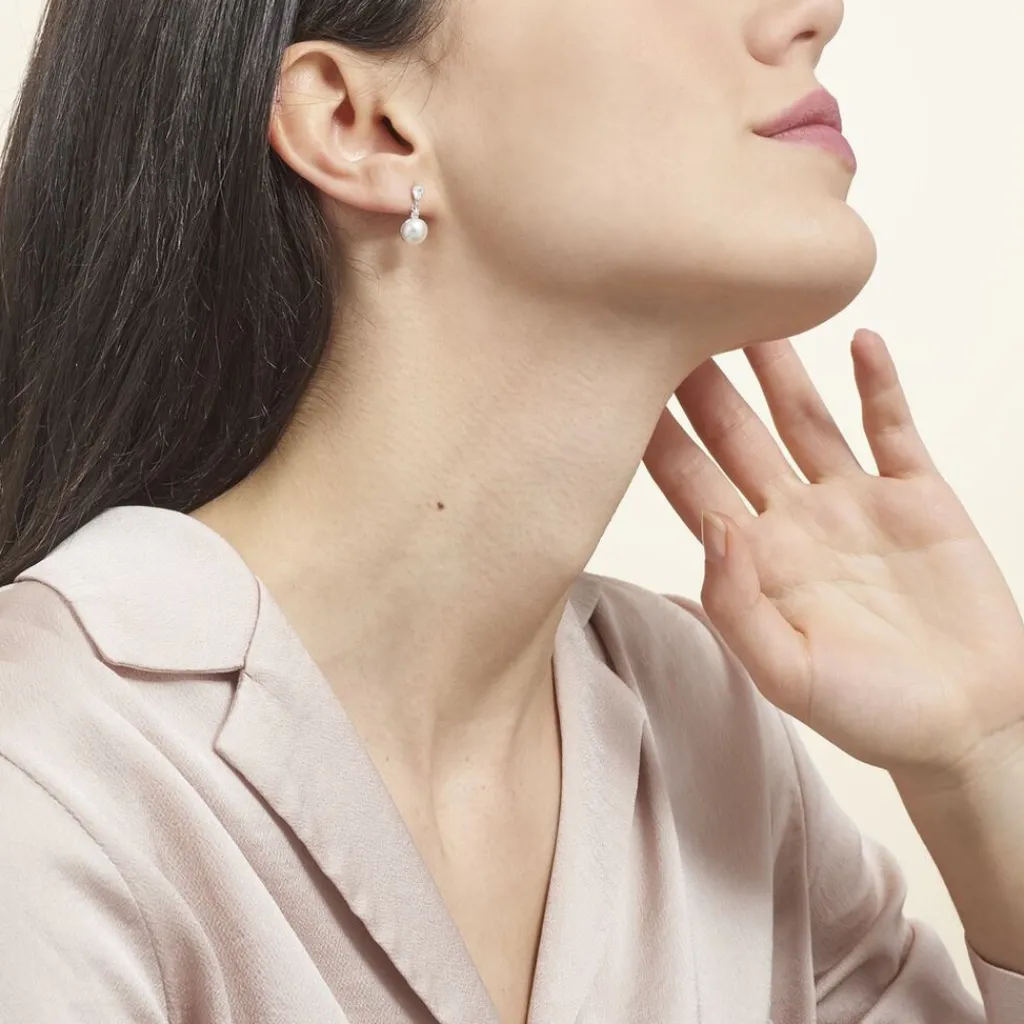 Boucles D’oreilles Argent Blanc 925/1000 Perles De Culture 7.5-8mm Et Oxydes De Zirconium