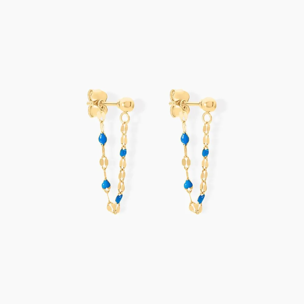 Boucles D’oreilles Pendantes Or Jaune 375/1000 Pendantes Email Bleu Maille Lumina