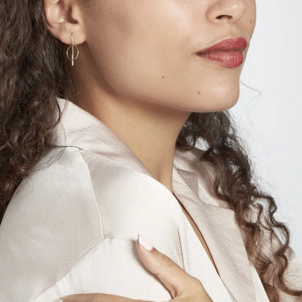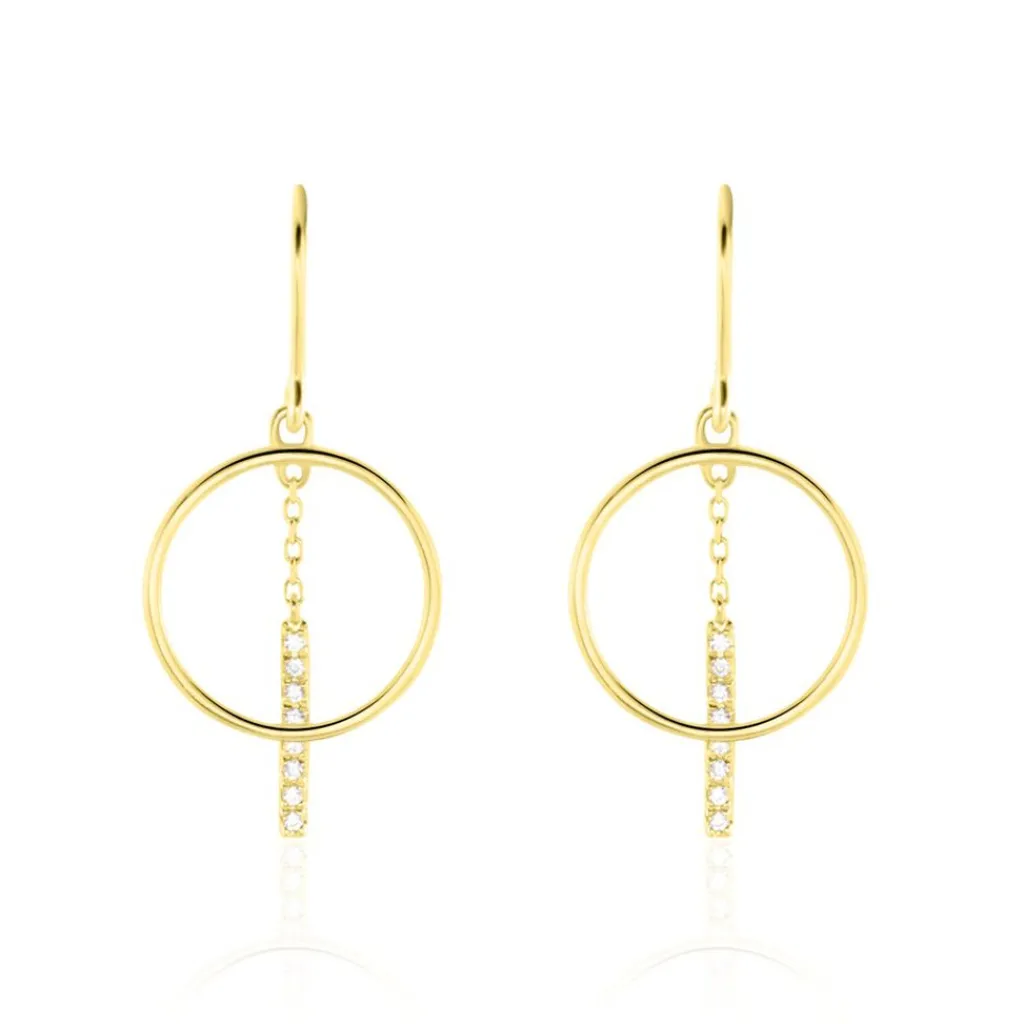 Boucles D’oreilles Or Jaune 375/1000 Motif Cercle Ajoure + Barrette Pavée Oxyde De Zirconium 40+2cm