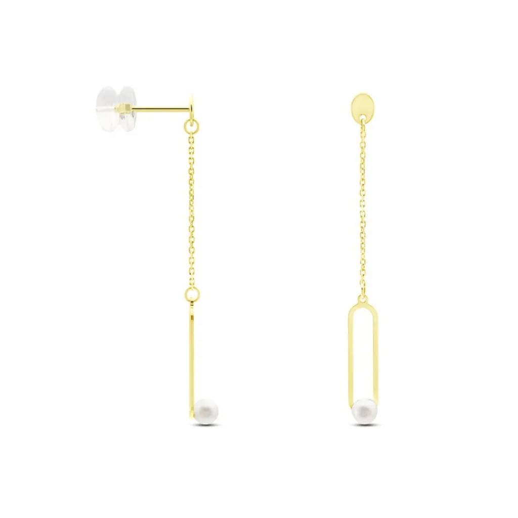 Boucles D’oreilles Pendantes Or Jaune 375/1000 Perle De Culture 3-3.5mm