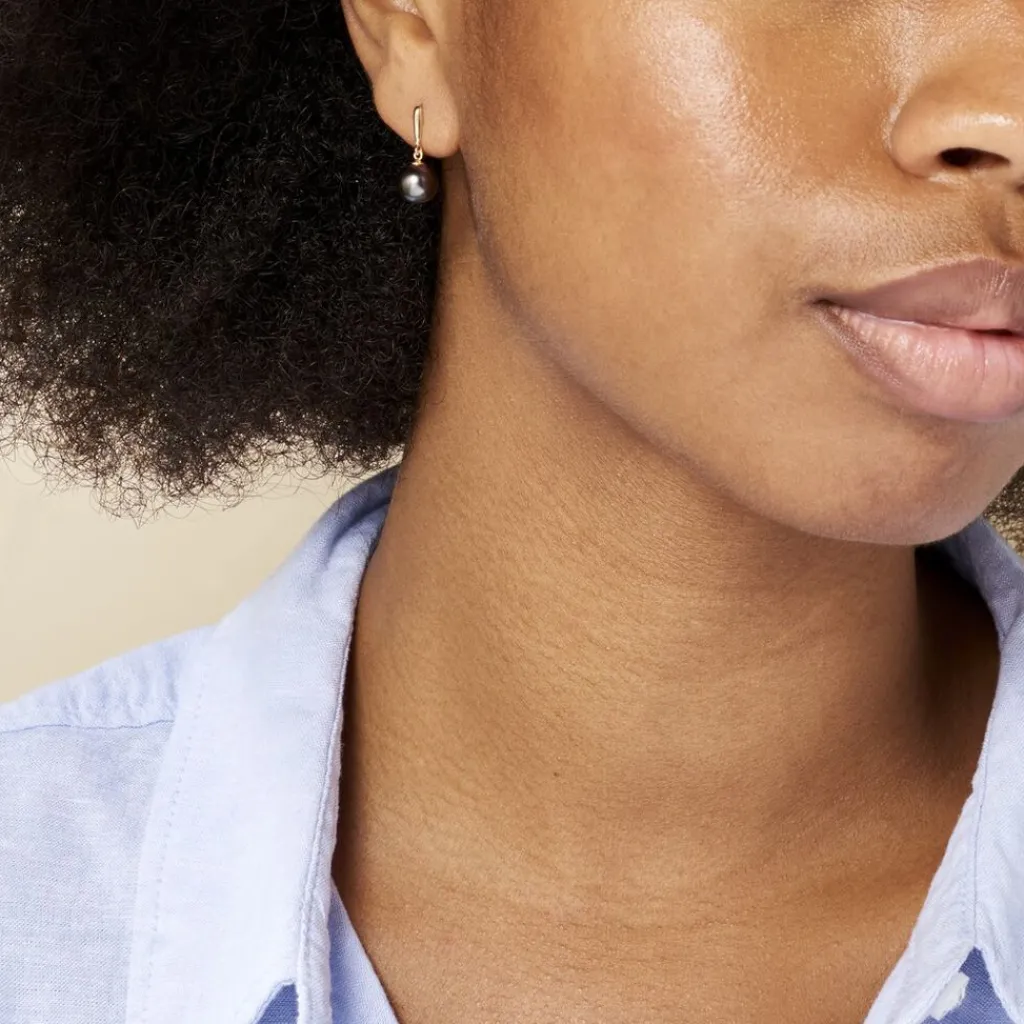 Boucles D’oreilles Or Jaune 375/1000 Perle De Culture Mer Du Sud Tahiti 8/9mm Semi-baroque