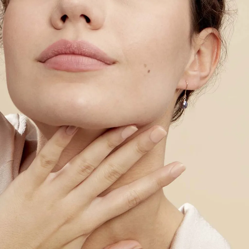 Boucles D’oreilles Pendantes Or Jaune 375/1000 Perles De Culture Nacre Noire 5.5/6mm
