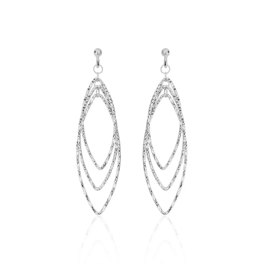 Boucles D’oreilles Pendantes Argent Blanc 925/1000 Ovales Multiples Ajoures Effet Diamante