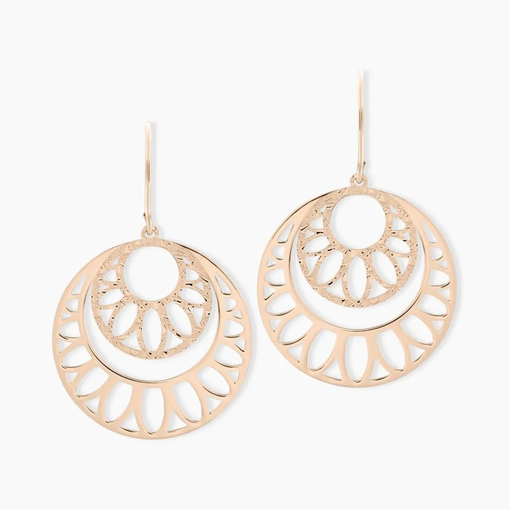 Boucles D’oreilles Pendantes Argent Rose 925/1000 Rosaces Effet Diamante