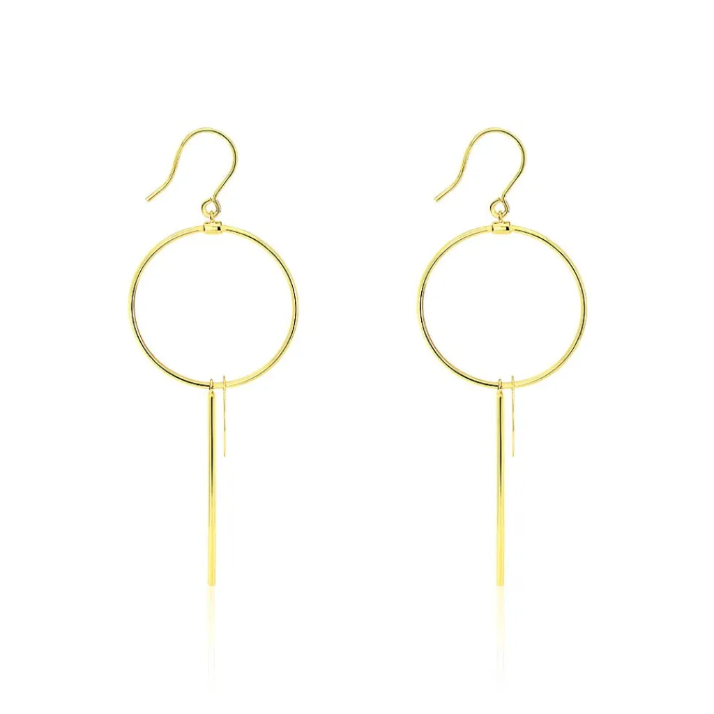 Boucles D’oreilles Or Jaune 375/1000 Cercles Ajoures + Pampilles Cercles Pleins Et Barrettes
