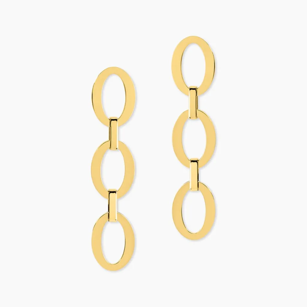 Boucles D’oreilles Pendantes Acier Inoxydable Jaune 3 Maillons Juxtaposes 6.4cm