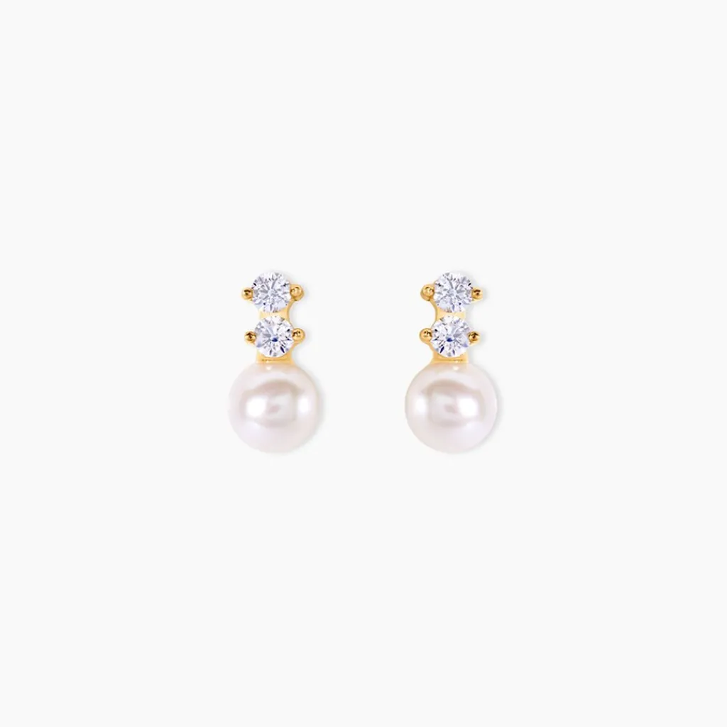 Boucles D’oreilles Or Jaune 375/1000 Oxydes De Zirconium + Perles De Culture