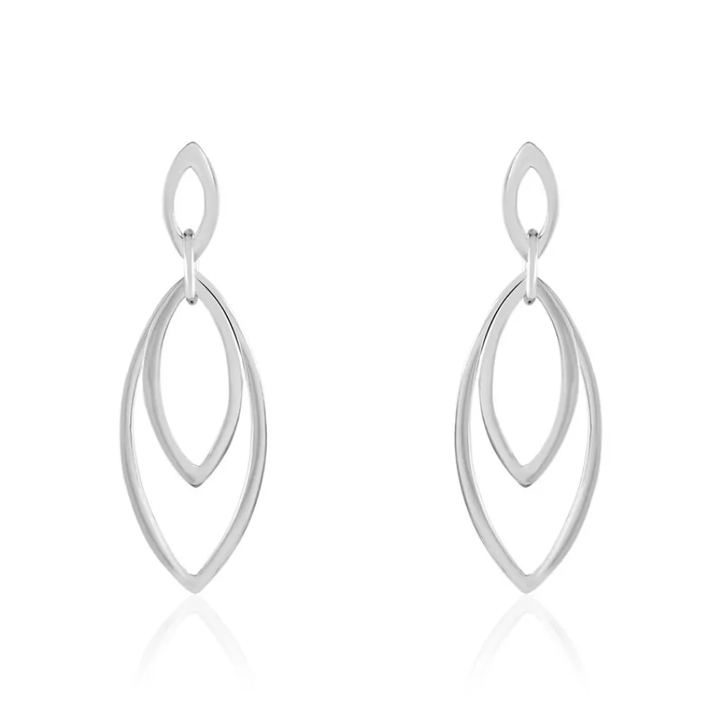 Boucles D’oreilles Pendantes Argent Blanc 925/1000 Ovales Ajoures