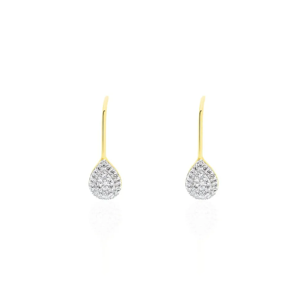 Boucles D’oreilles Or Jaune 375/1000 Dormeuses Forme Goutte Pavage Diamants