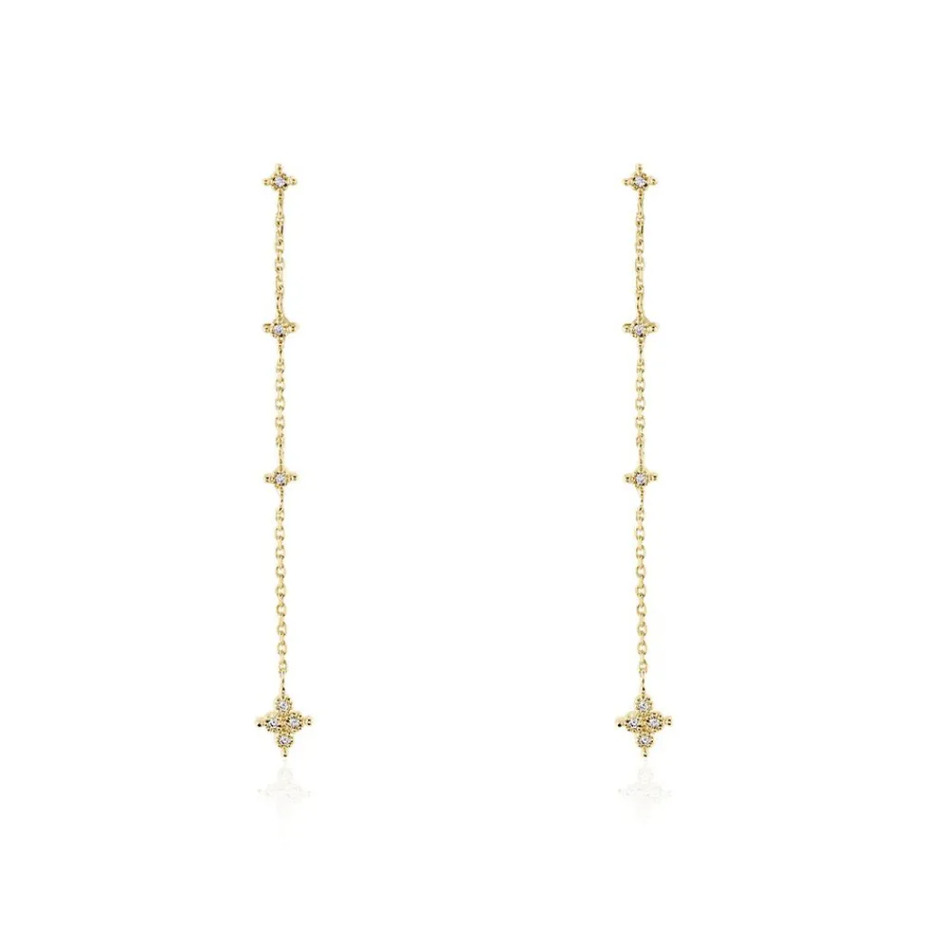 Boucles D’oreilles Pendantes Plaque Or Chaines Forçat Etoiles Oxydes De Zirconium