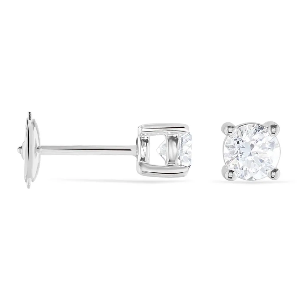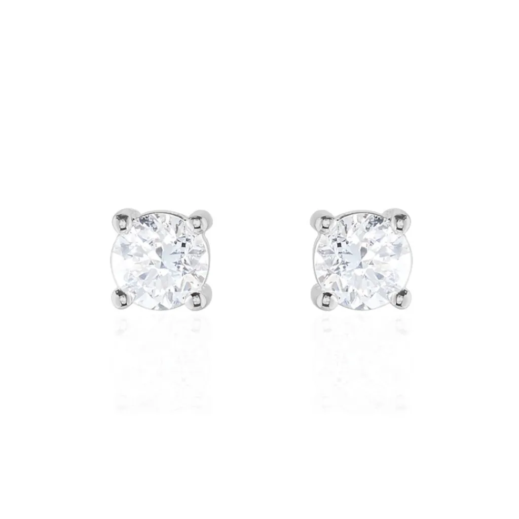 Boucles D’oreilles Puces Or Blanc 750/1000 Diamants Synthétiques 1.00ct Serti 4 Griffes Systèmes Alpas