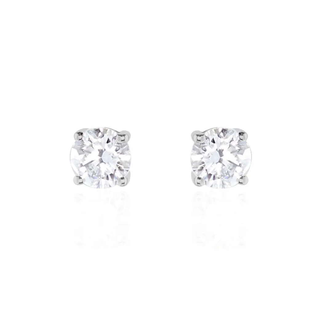 Boucles D’oreilles Or Blanc 750/1000 Puces Diamants Synthetique 0.50cts Sertis 4 Griffes Systemes Alpas