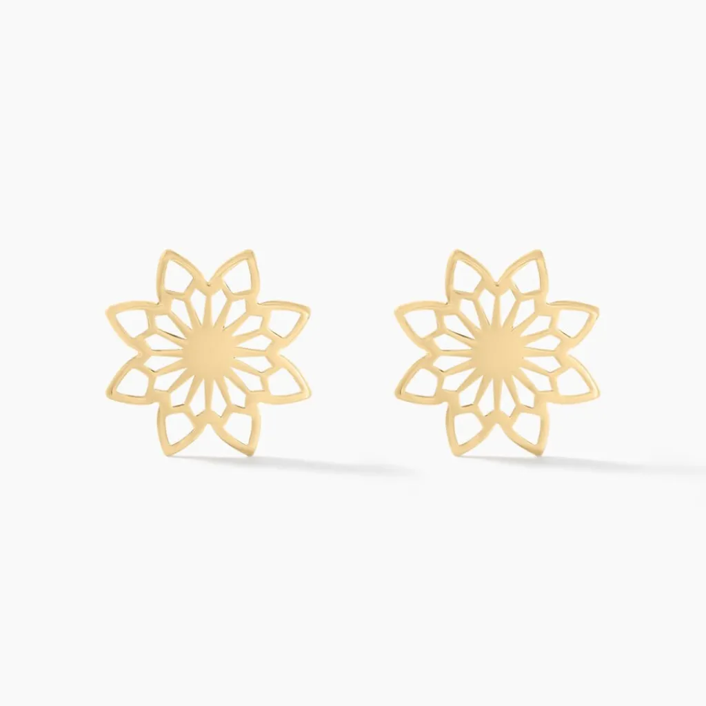 Boucles D’oreilles Or Jaune 375/1000 Puces Fleurs Origami