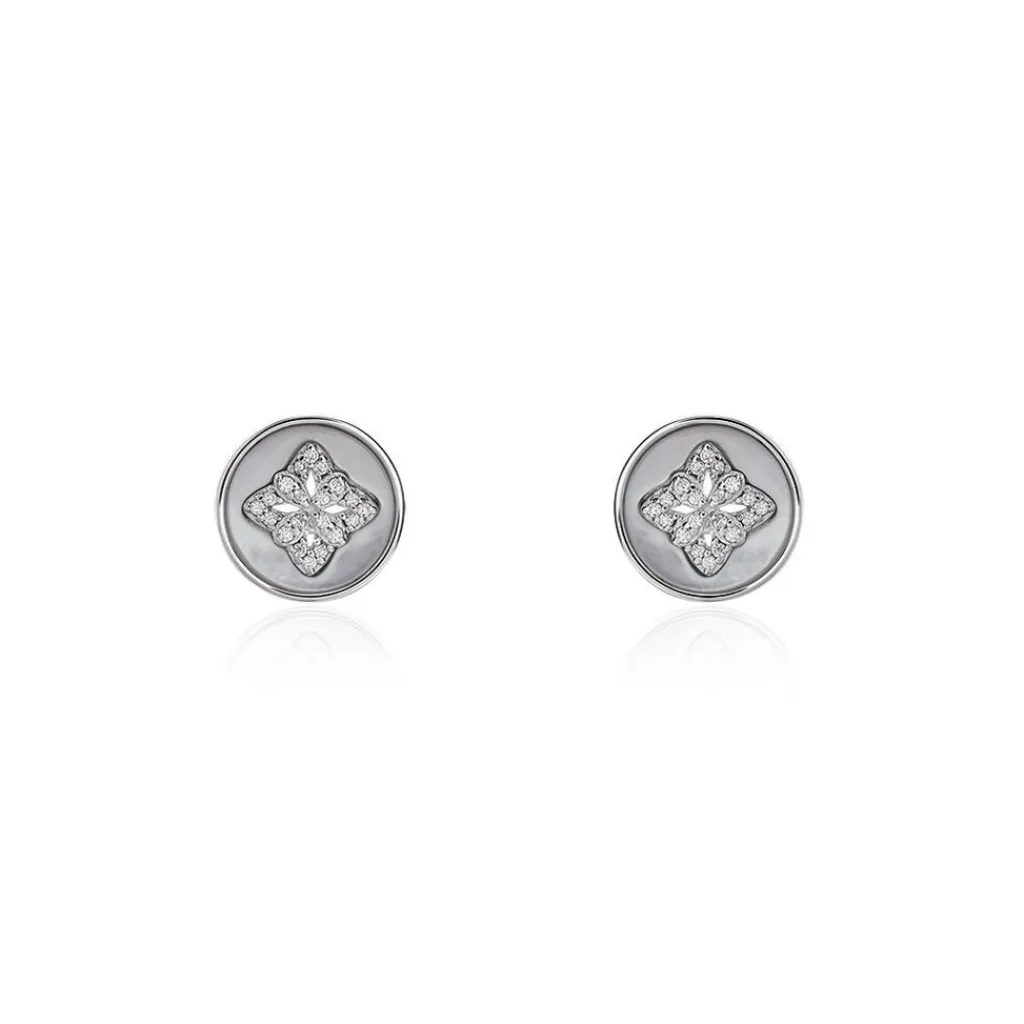Boucles D’oreilles Argent 925/1000 Nacre Grise Etoile Oxyde