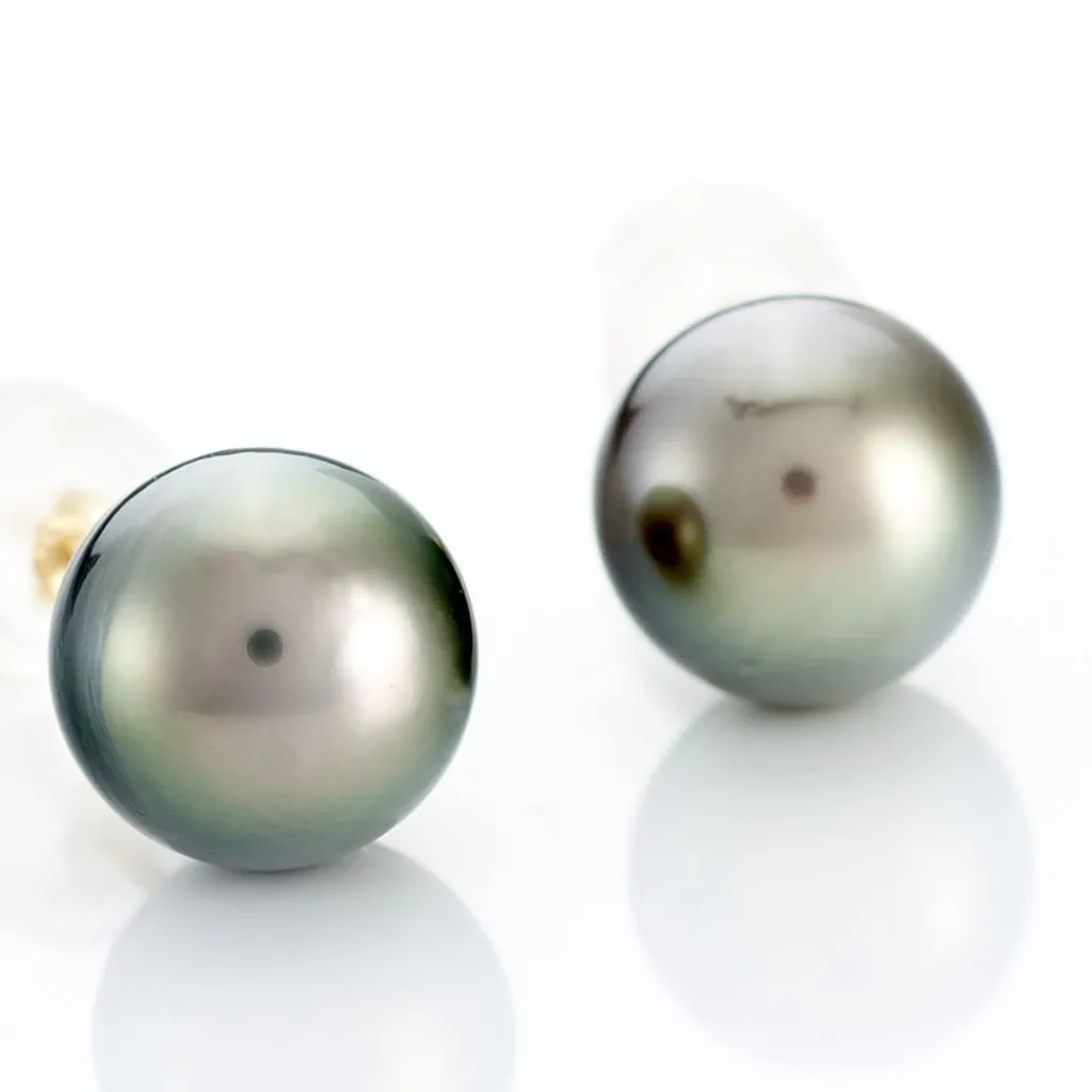 Boucles D’oreilles Or Jaune 375/1000 Perle De Culture Mers Du Sud Tahiti 8/9mm Semi-ronde
