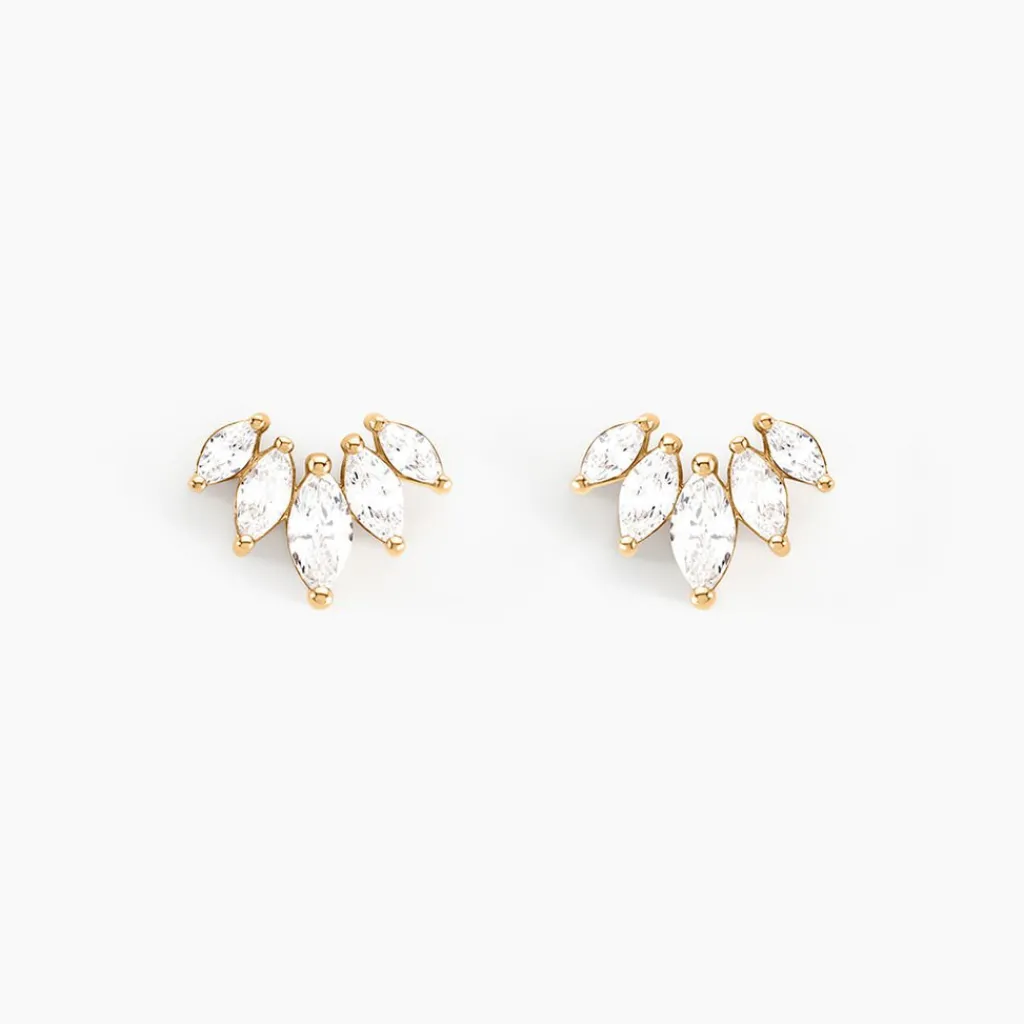 Boucles D’oreilles Puces Plaqué Or Jaune Oxydes De Zirconium Forme Navette