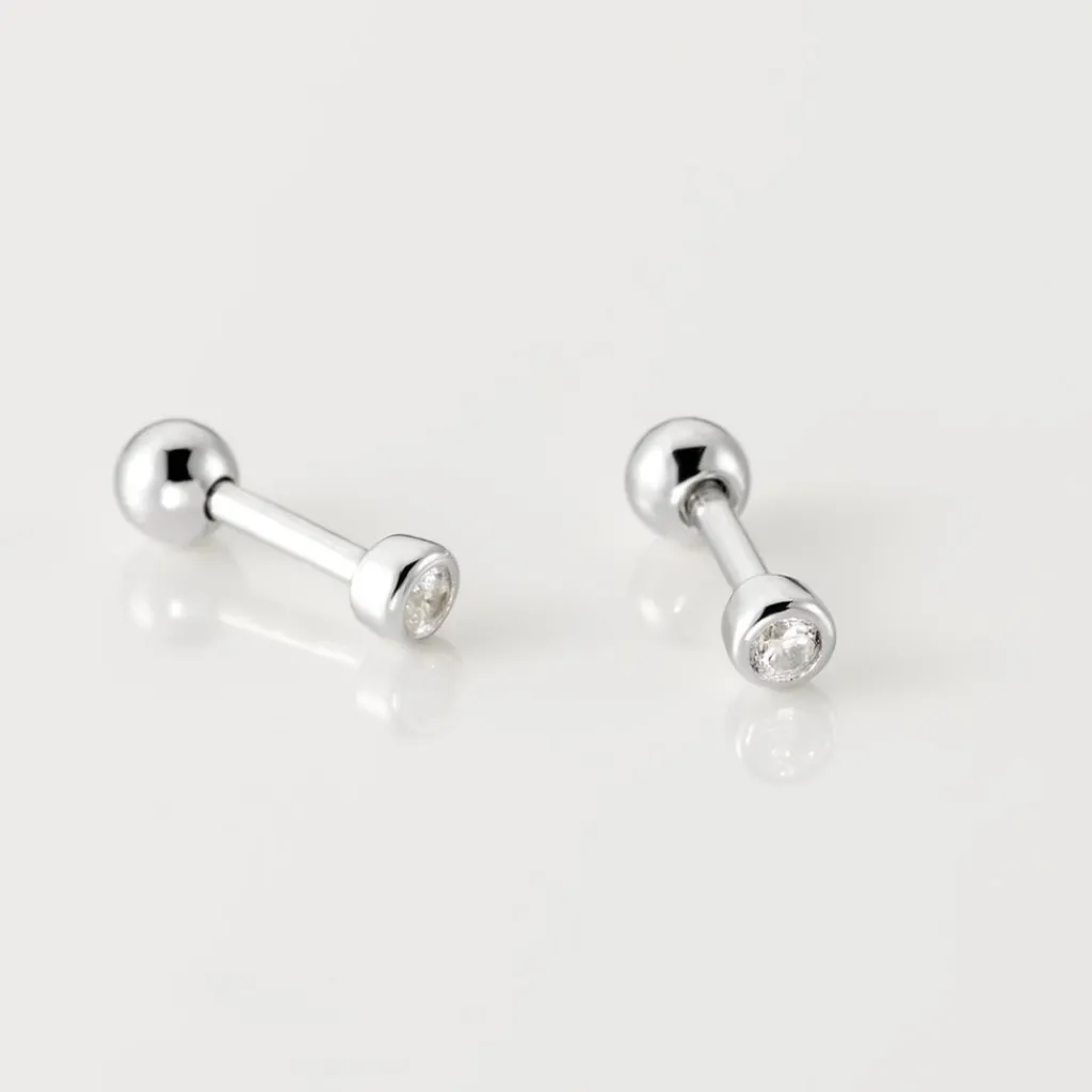 Boucles D’oreilles Puces Argent 925/1000 Mini Solitaire Sertis Clos Oxydes De Zirconium