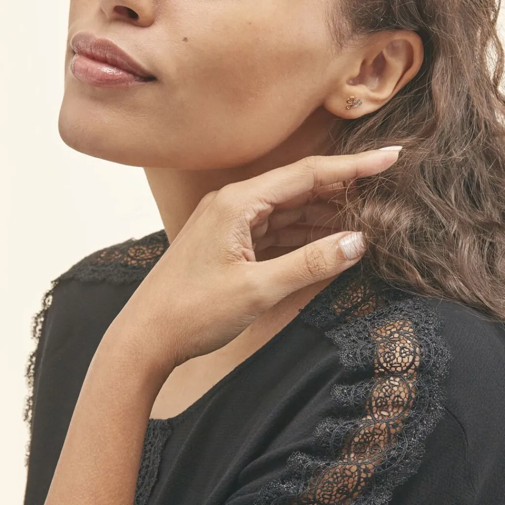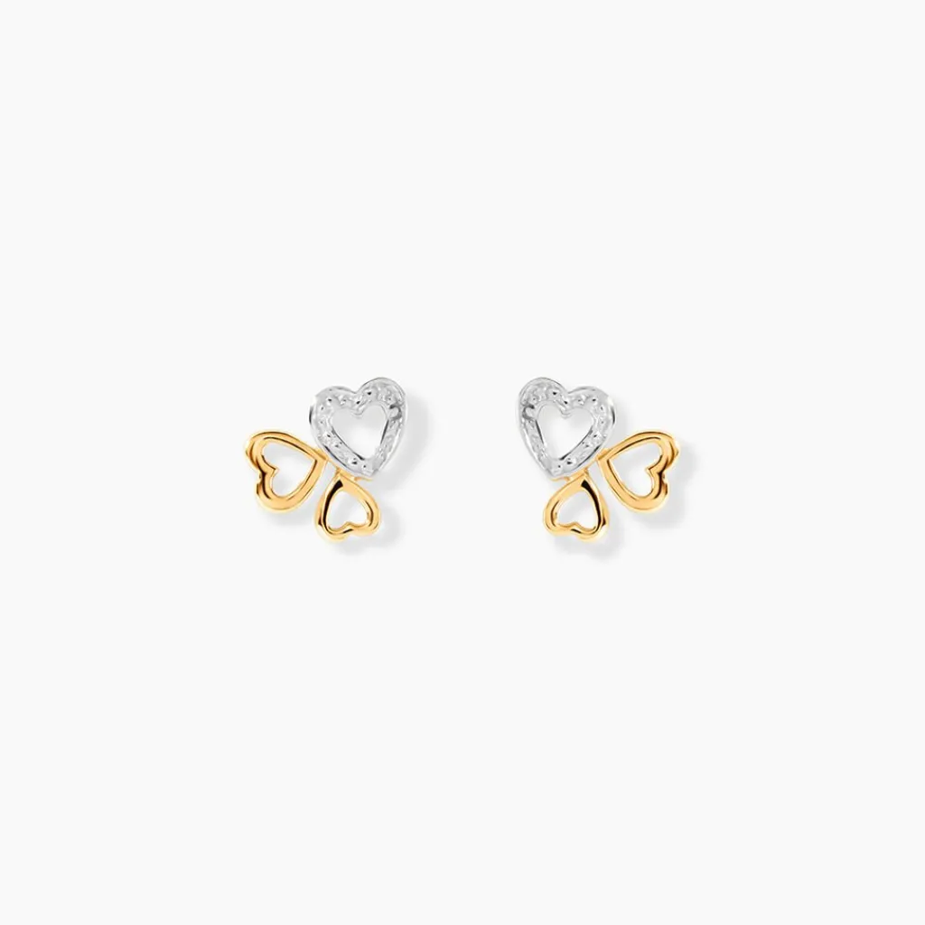 Boucles D’oreilles Or Bicolore Jaune/rhodiage 375/1000 3 C艙urs Ajoures