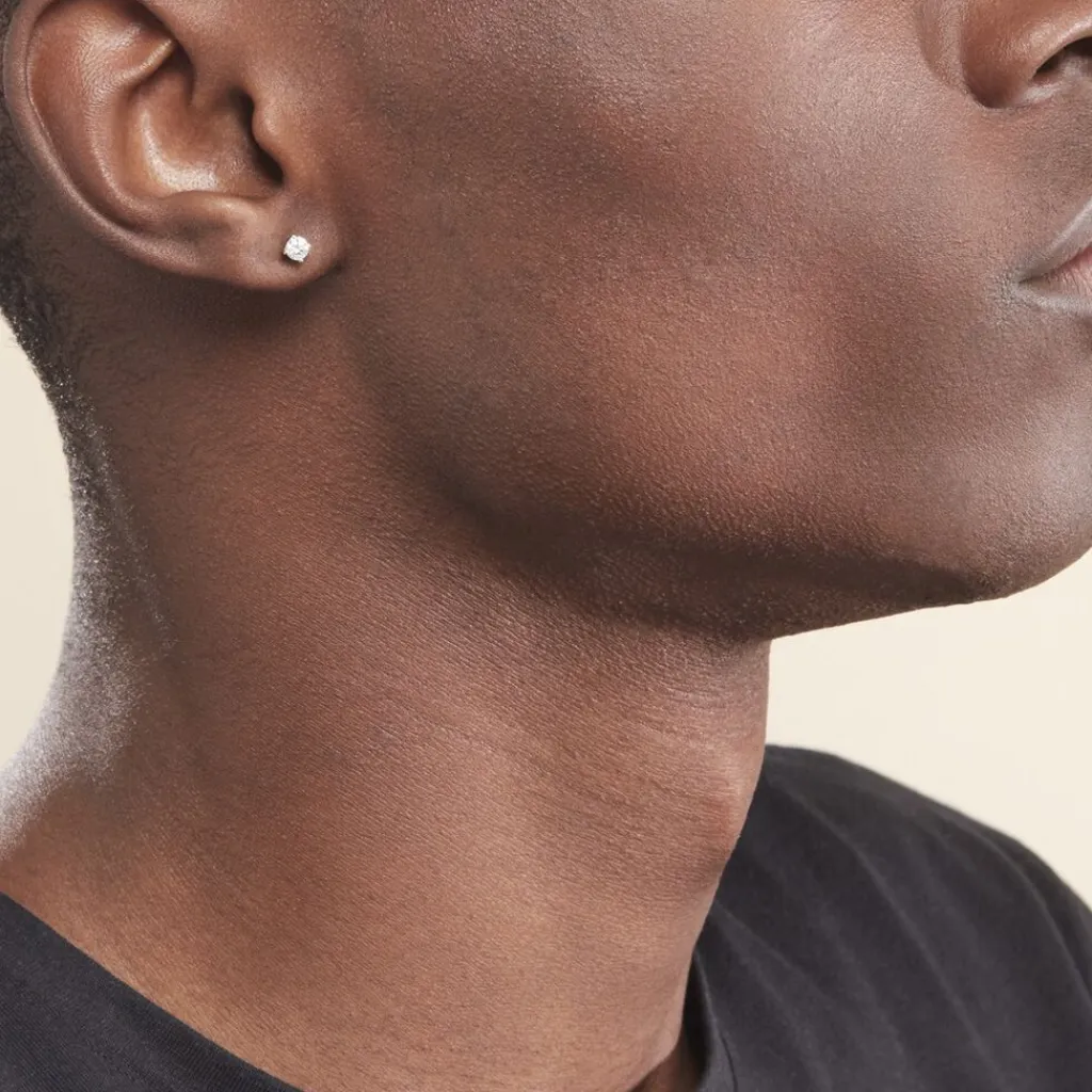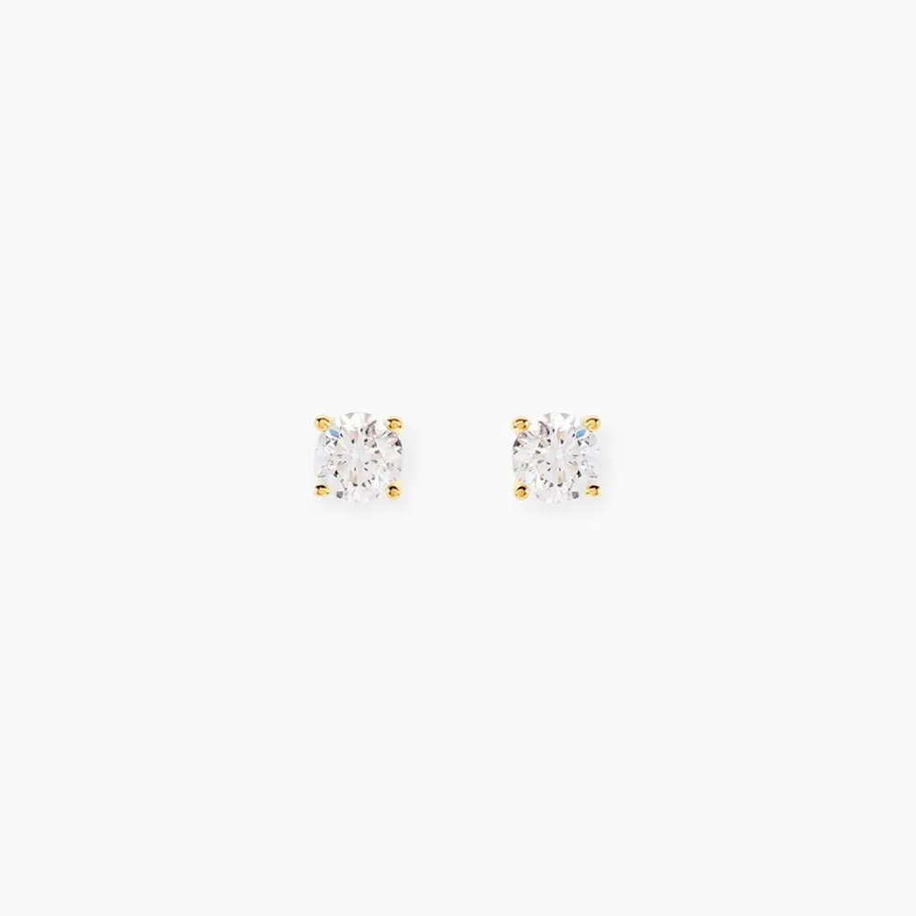 Boucles D’oreilles Or Jaune 375/1000 Puces Diamants 0.40cts Sertis 4 Griffes