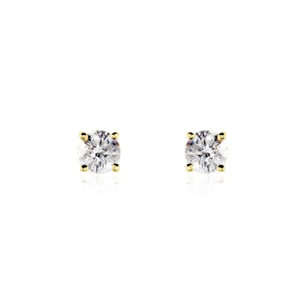Boucles D’oreilles Or Jaune 375/1000 Puces Diamants 0.50cts Sertis 4 Griffes