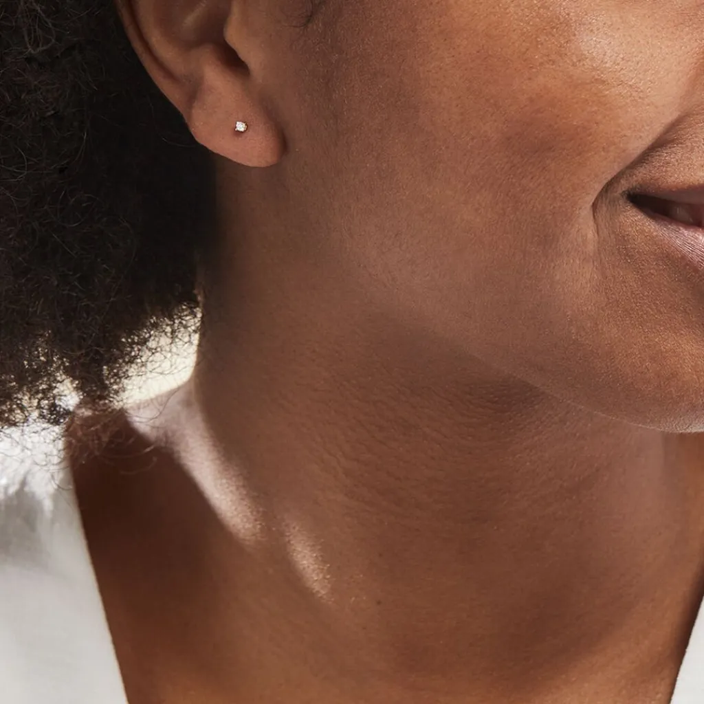 Boucles D’oreilles Or Jaune 375/1000 Puces Diamants 0.06cts Serti 4 Griffes