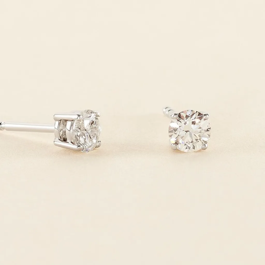 Boucles D’oreilles Platine 950/1000 Puces Diamants 0.40cts Sertis 4 Griffes Systemes Alpas