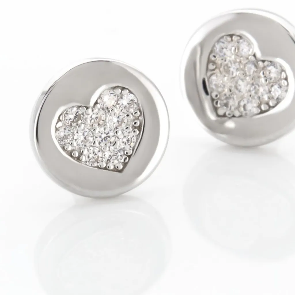Boucles D’oreilles Puces Argent Blanc 925/1000 Pastilles Pavage C艙ur