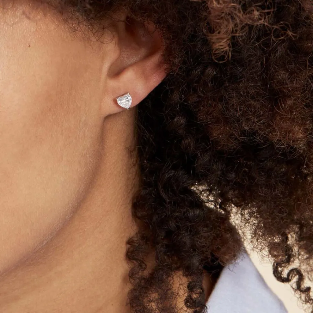 Boucles D’oreilles Puces Argent Blanc 925/1000 C艙urs Serti Griffes Oxydes De Zirconium